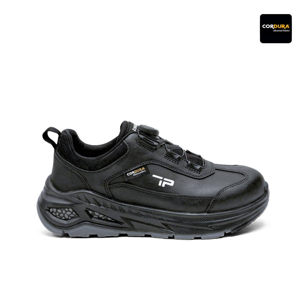Zapatilla de seguridad con sistema Spinon®, capellada en cuero + Cordura® waterproof, puntera composite y suela PU + goma. Certificada ISO 20345:2021 Clase 1 SB SR WR E FO SC HRO + IRAM.
